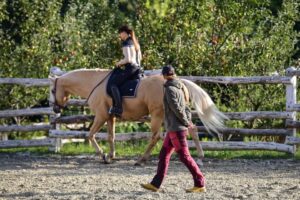 Általánosságban egyenlő arányban van földi munka és lovaglás. A nyeregbeli munkát általában megelőzi a földi munka, aminek egyik célja, hogy előkészíti a lovast és a lovat- amellett hogy szórakoztató – a lovaglásra. Ugyanakkor az elérendő céltól függően, melyet közösen határozunk meg a munka elkezdte előtt, zajlanak a foglalkozások, hogy tényleg személyre szabott edzést kapjon mindenki elképzelésének megfelelően.